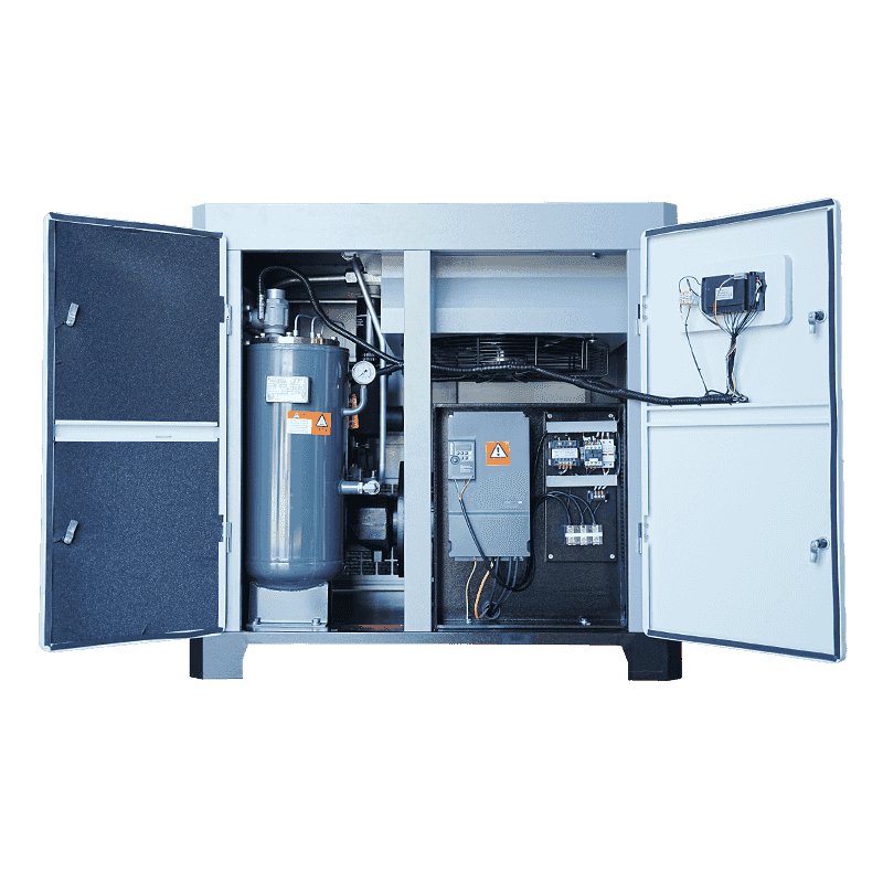 50HP modelinde kullanılan çift vidalı sıkıştırma sistemi, minimum iç sızıntı ve tutarlı basınç çıkışı ile sürekli hava akışı sağlayacak şekilde tasarlanmıştır. Bu yapısal avantaj, uzun süreli çalışma sırasında enerji stabilitesinin korunmasına yardımcı olur. Geleneksel pistonlu veya çok kademeli ünitelerle karşılaştırıldığında tek kademeli çift vidalı format, kompresörün gerekli hava akışını daha verimli bir şekilde sunmasına olanak tanır. Kararlı dahili sıkıştırma işlemi, tüketimi artırabilecek dalgalanmaların azaltılmasına yardımcı olur. Uzun süreler boyunca bu kararlılık, kompresörün gereksiz güç artışları olmadan görevlerini yerine getirmesini sağlar ve zorlu ortamlarda öngörülebilir ve kontrollü enerji kullanımını destekler.